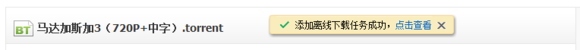 3、添加離線任務完畢后,可選擇點擊查看,頁面將跳轉到自己的網盤頁面,并加載離線下載列表,我們可以看到這個種子資源已經下載完畢了。比較熱門的資源可以實現秒傳哦~