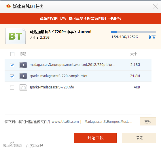 2、選擇自己電腦上的種子文件,確認后系統彈出下載框,點擊下載即可開始。