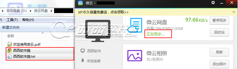 1、微云網盤的上傳與其他網盤不同,微云網盤安裝完畢后會在安裝目錄新建一個同步文件夾,我們只要將想要上傳的文件拖入這個文件夾中點擊立即同步就會上傳到微云中。