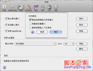進入系統設置(或者叫首選項),然后進入“內容”選項卡,點擊“啟用Javascript”旁邊的高級按鈕,進去后將”禁用或替換上下文菜單“前面的鉤去掉就可以了!