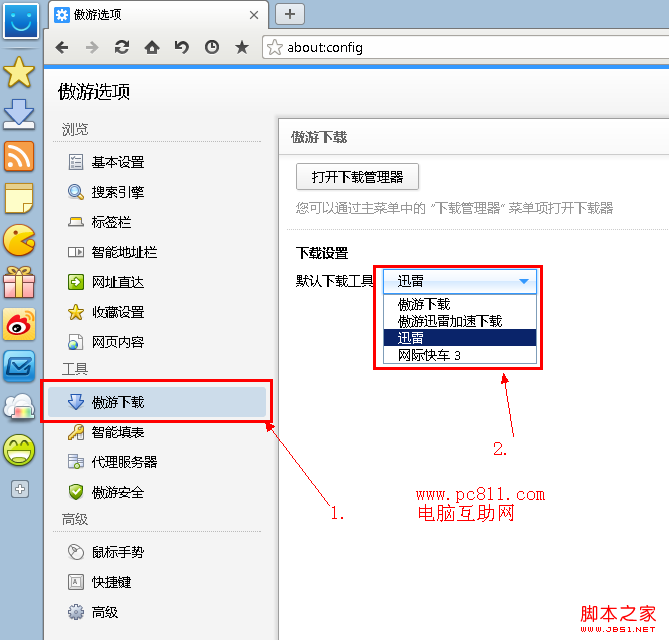 搜狗/傲游瀏覽器圖解修改默認下載工具設置方法