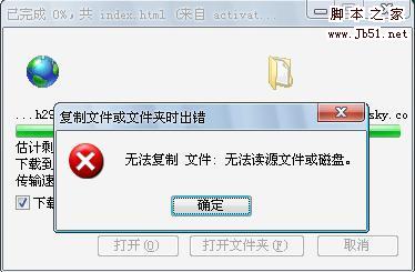 今天在用IE7下載時,提示:無法復制文件 無法讀源文件或磁盤