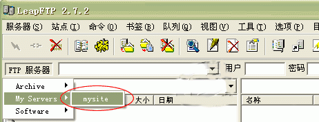 5.您可以點擊上圖5處“連接”按鈕,直接進入連接狀態;也可以回到主菜單點擊 “FTP 服務器”-> “My Servers” -> “mysite” 進入連接狀態。