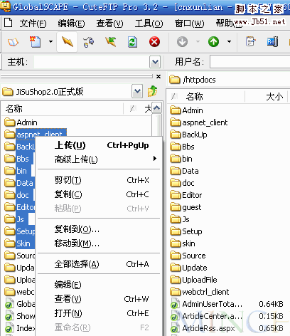 5. 打開FTP站點(diǎn)后,即可上傳或下載文件