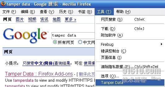 第三步:安裝完后后,可以在 Firefox 菜單欄的“工具”菜單項里面找到 Tamper Data,如下圖所示: