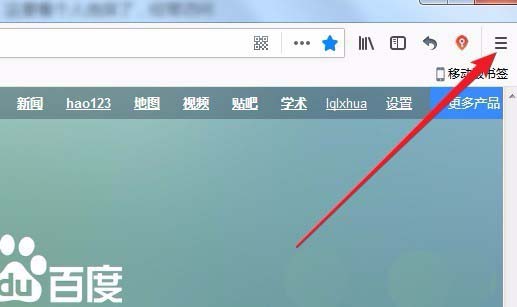 1、在打開的Firefox瀏覽器主界面,點擊右上角的“打開菜單”按鈕。