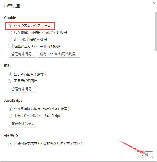 6、完成上步驟后,進入如下頁面,在第一項中就是Cookie,選擇紅色圈出選項即可完成Cookie的開啟。