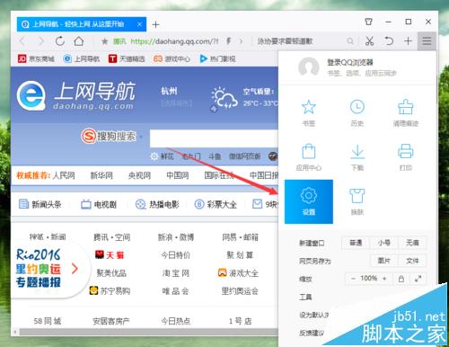 4、點擊“設(shè)置”命令選項后,這個時候會彈出瀏覽器“設(shè)置”對話窗口。如圖所示;