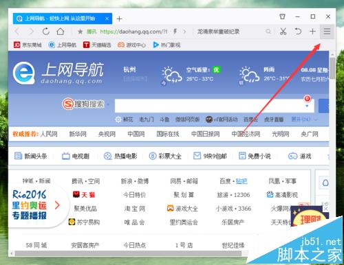 2、在打開的瀏覽器界面,點擊右上角的“三橫”菜單選項。如圖所示;