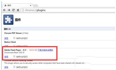 在谷歌瀏覽器上打開:chrome://plugins 然后會看到瀏覽器使用的插件,找到Adobe Flash Player,點擊禁用即可