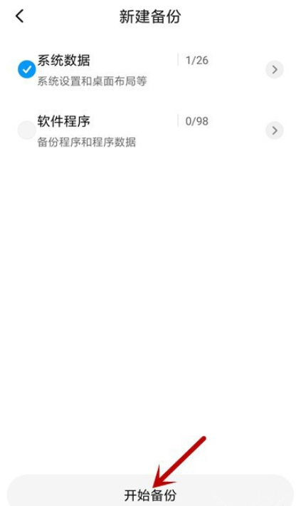 打開系統備份功能,如圖,點擊底部的【新建備份】,