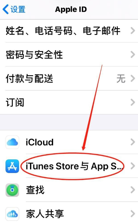 進入Apple ID設置頁面,點擊【iTunes Store與App Store】,如圖所示,