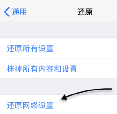打開蘋果手機(jī)上的設(shè)置,點擊“通用”后點擊“還原”再點擊’還原“網(wǎng)絡(luò)設(shè)置”。