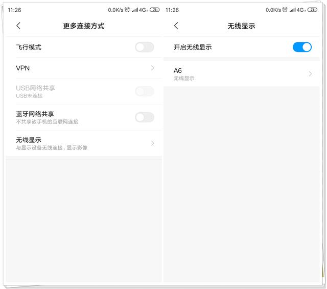 進入手機【設置】界面,找到【更多連接方式】,勾選【開啟無線顯示】功能,然后連接掃描出來的設備,注意,必須確保手機和電腦連接的是同一個WiFi,否則無法進行投屏~