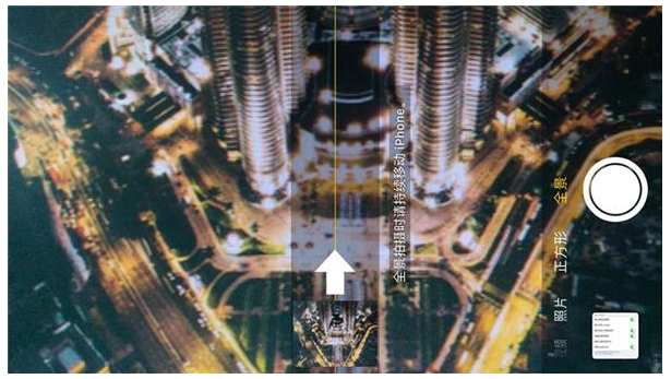 想拍攝一幢建筑物,但是高度不夠,咋辦呢?可以使用全景模式,把手機橫過來,從下往上緩慢拍攝,就可以得到一張高建筑的照片了(注意保持箭頭在同一中心線上)!