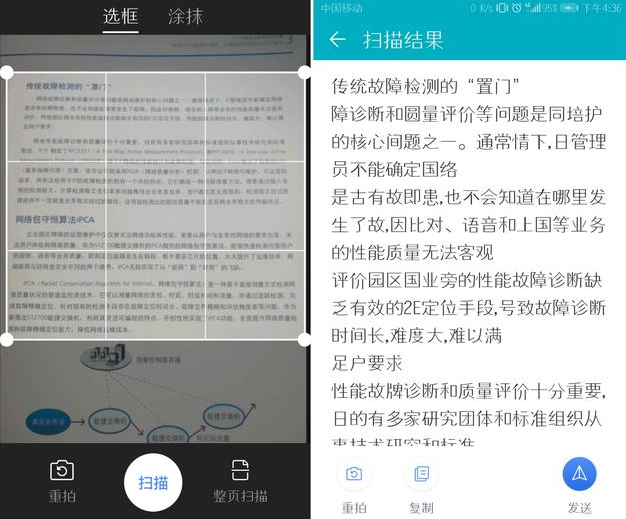 將手機對著書本、圖片進行拍照,點擊【掃描】,掃描結果如圖,你可以選擇復制文字、或者直接發送。