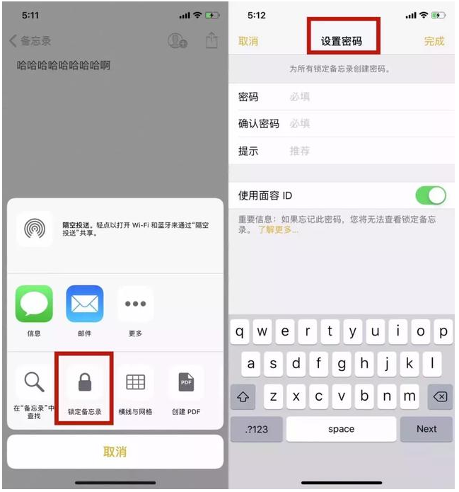 當然,你也可以保密一些珍貴照片,可以把它們放在備忘錄中進行上鎖,再把相冊里照片的刪除。