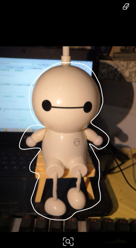 為了讓識別結果更精準,我們可以根據提示、用手指圈出識別的主體,如果圈錯了,可以點擊右上角的橡皮擦進行擦除。