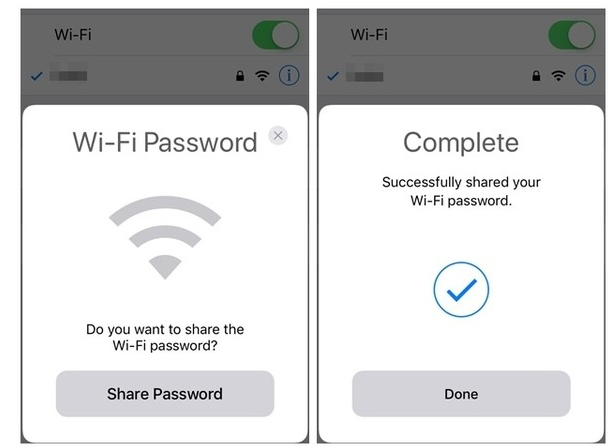 3、另一臺設備需要搜索并接入相同的WiFi網絡時,已經連接WiFi的設備會彈出對話框詢問是否需要分享WiFi密碼,輕觸「分享」,對方手機即可自動接入此WiFi、無需輸入密碼。