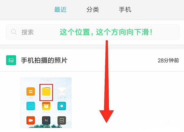 這個神奇功能的入口就在“文件管理”這一系統(tǒng)工具中,打開文件管理,手指從頂部位置向下劃,大家會看到“正在打開私密文件夾”字樣,松開手就會進(jìn)入私密文件夾(剛開始,大家可能看到一些提示性的設(shè)置操作,直到你設(shè)置完指紋、開啟私密文件夾為止)!