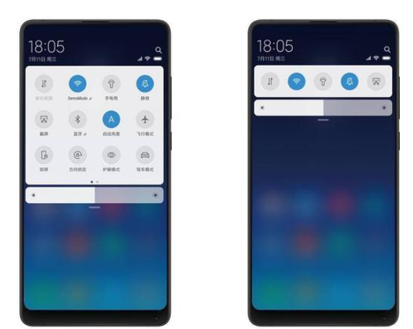 除了音量鍵以外,亮度調節面板也有了新的改變。以前調節亮度時,大家采用拖拽“小圓點”進行調節,MIUI10把亮度調節欄進行了放大,采用了寬條型設計,并且在你需要調節亮度時,手指按上去,在任意位置左右滑動就可以實現調節明暗的效果,操作更便捷了。