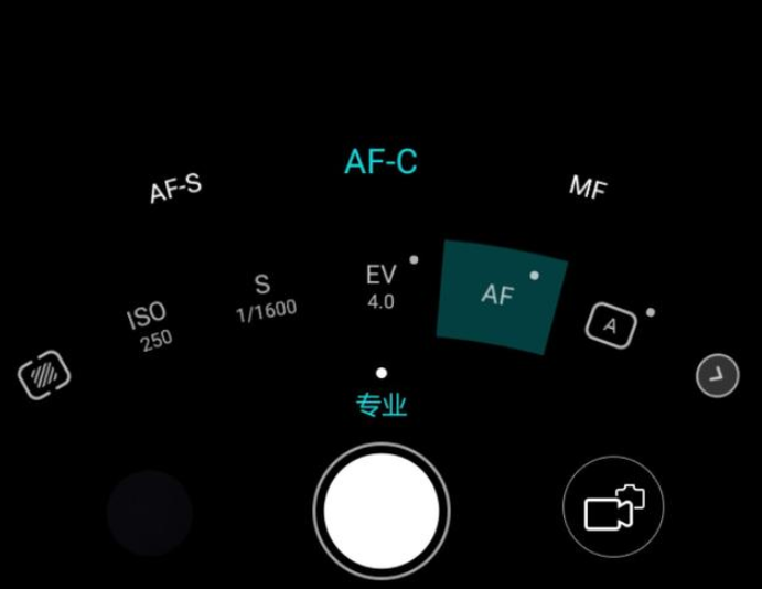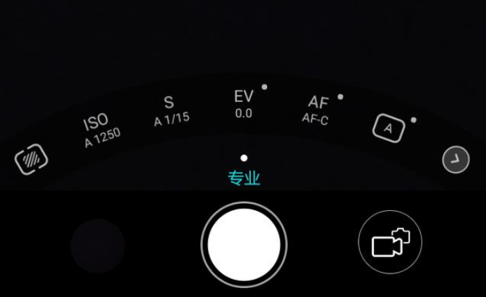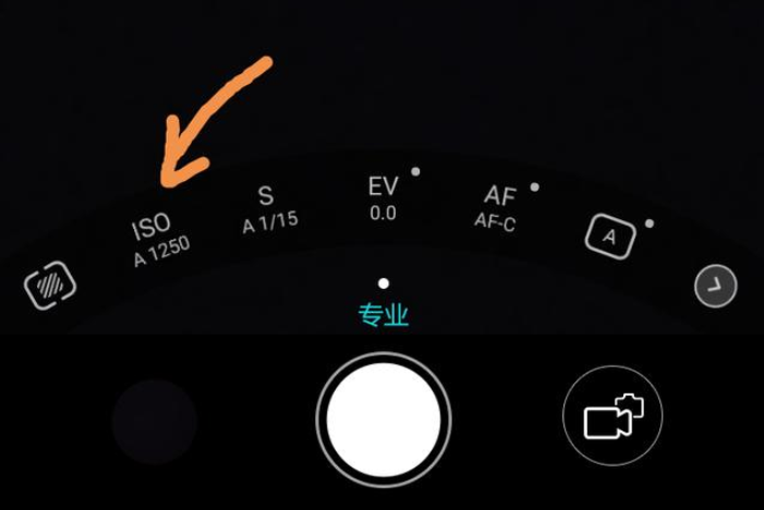 點擊專業模式,我們看到在相機快門按鍵的上方有一排參數。