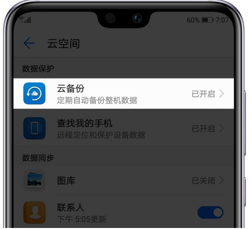 【設置】-【登錄華為帳號】-【云空間】-【云備份】開啟