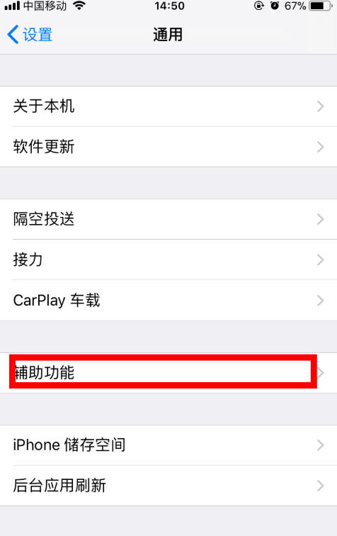 進(jìn)入iPhone設(shè)置頁面,打開通用選項(xiàng),進(jìn)入輔助功能。