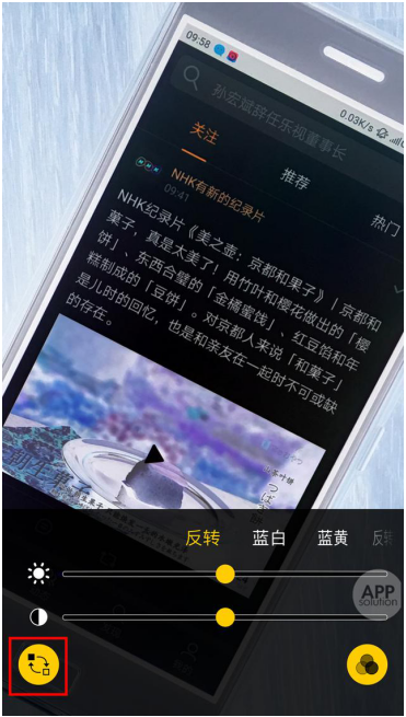 當然,它還有“反轉”功能,在“顏色”界面點擊左下角的圖標,就能找到。