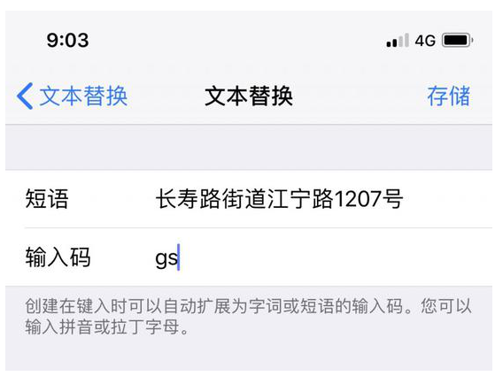 用戶在打字時經常會碰到一些日常用語,如果每次碰到日常用語都有一個快捷鍵或是系統自動識別自己要說的話,自動顯示出來該多好。雖然iOS輸入法還做不到如此智能,但用戶完全可以靠快捷短語解決以上問題。在“通用”中找到“文本替換”,點擊頁面右上角的加號,就可以添加快捷短語。比如,在短語中寫入自己的公司地址,輸入碼設置為“gs”,當你下次想輸入公司地址時,只需打出“gs”,輸入法的選項中就會出現你的公司地址。