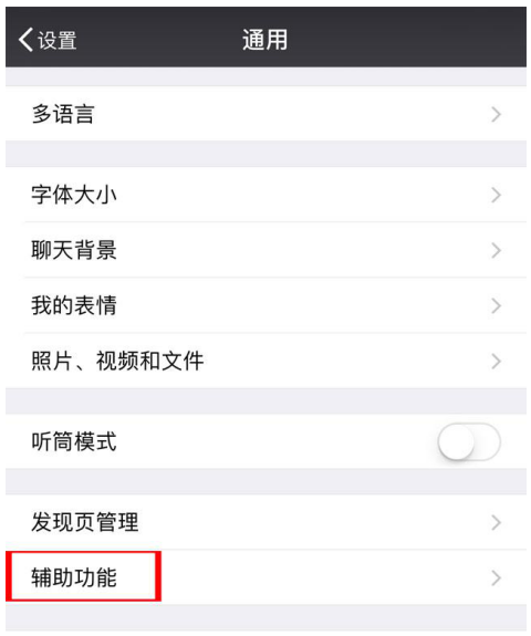 第一個(gè),打開(kāi)微信設(shè)置,在通用里找到“輔助功能”,根據(jù)我們的需要,關(guān)閉不常用到的功能。