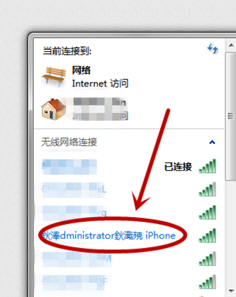 選擇iPhone熱點并連接,電腦就可以通過手機上網了!