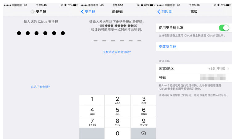 3、iCloud 登錄密碼與鑰匙串安全碼
