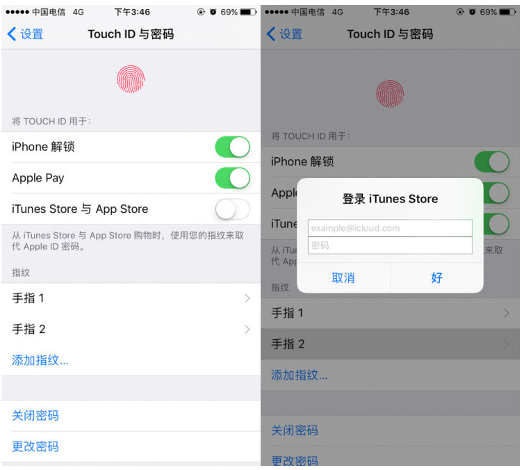 然而沒有鎖屏密碼是無法添加Touch ID的,所以鎖屏密碼是您“第二個”需要牢記的密碼。「iTunes Store與App Store 密碼」與Apple ID密碼相同,所以只需登錄即可。