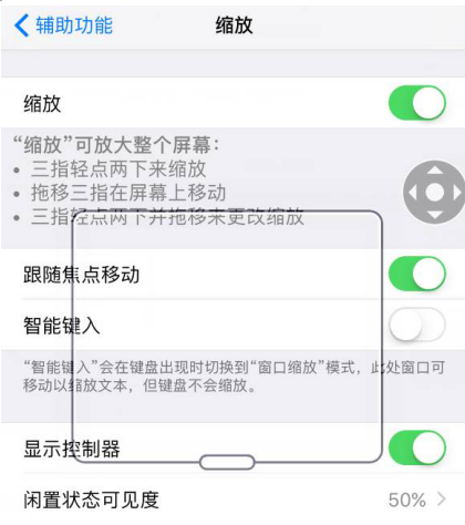 2、打開“縮放”功能,點擊窗口邊框下部的長條。