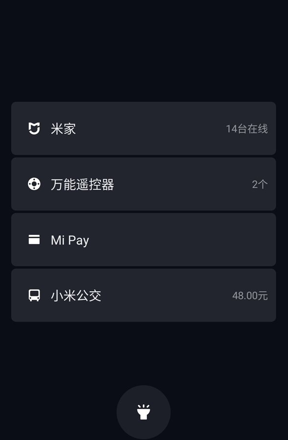 MIUI 9鎖屏左一屏采用新的設計,鎖屏時向右滑動可以看到。鎖屏狀態下屏幕向右滑動就可以找到手電筒、米家、萬能遙控器、MI Pay、小米公交共5個快捷功能入口。