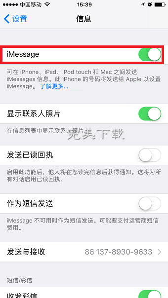 在設置界面下滑就可以找到【信息】,進入之后關閉【iMessage】選項即可關閉短信的同步(同步助手下載地址:http://m.survivalescaperooms.com/heji/tongbuzhushou/)。