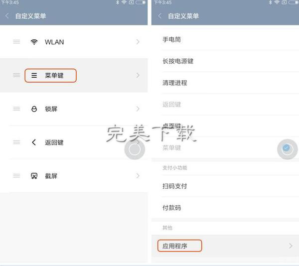 2、自定義應用程序:如下圖,比如把“菜單鍵”改成“QQ開啟鍵”
