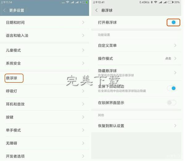 懸浮球這一功能從系統默認一下是關閉的,所以想體驗這個功能,首先得設置開啟,如下圖所示