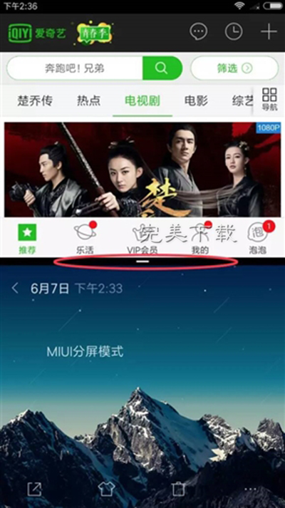 選擇你想要進(jìn)行分屏的兩款A(yù)PP,通過中間的滑桿你可以調(diào)節(jié)這兩個(gè)APP展示內(nèi)容的大小選擇你想要進(jìn)行分屏的兩款A(yù)PP,通過中間的滑桿你可以調(diào)節(jié)這兩個(gè)APP展示內(nèi)容的大小。