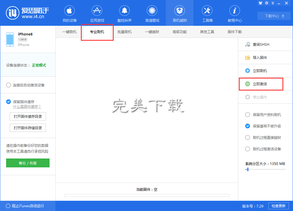 1、首先下載安裝最新版愛思助手PC端,用數據線把移動設備連接到電腦;點擊上方“刷機越獄”進入到“一鍵刷機”界面,連接成功會自動匹配固件;