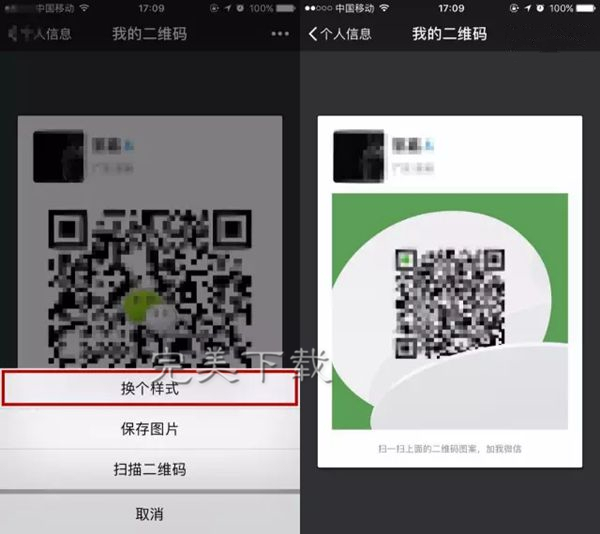 此次微信還在大會展示了最新設計的個人微信二維碼,用戶在個人信息-我的二維碼中,點擊右上角“…”,選擇換個樣式即可切換。