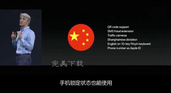第一便是File文件管理器支持多種中國云存儲廠商,第二便是Siri翻譯多種語言,第三個亮點便集中于下方這一張Keynote當中,包含二維碼支持、上海話語音識別、詐騙短信識別、9宮格輸入英語,Apple ID支持手機號注冊等等,在這些功能當中,二維碼識別支持大有玄機。