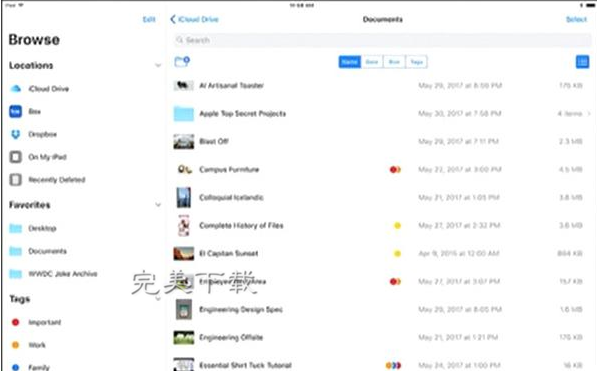 此次wwdc2017大會上蘋果正式發布了ios11系統,最亮眼的升級就是在ios中加入了文件管理功能,對于一向比較封閉的ios來說,改變不可謂不大。蘋果iOS11 Files文件管理器是蘋果系統最新推出的一款軟件,相信很多的玩家都非常的喜歡,那么,這款工具到底有什么功能,給用戶的生活可以帶來哪些方面的便利,下面就看下詳情,希望大家喜歡。