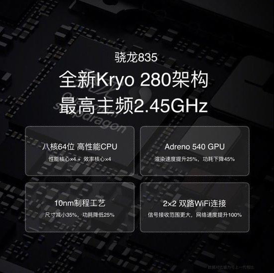 配置方面,小米6搭載驍龍835處理器,它是國內(nèi)首發(fā)835的機型。835采用了10nm制程,全新Kryo 280架構(gòu),主頻高達2.45GHz,綜合跑分成績高達184292,性能出眾。