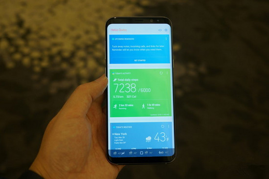 柔性屏幕幾乎消除了左右邊框,手機(jī)上下兩端的空間同樣進(jìn)行了結(jié)構(gòu)優(yōu)化,竟然把屏占比提高至84%。三星Galaxy S8/S8+并未犧牲功能性以換取美觀度,視覺(jué)上顯得極為平衡。