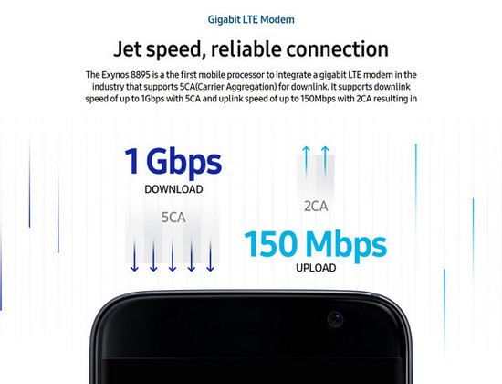 網(wǎng)絡(luò)上面,三星Exynos 8895支持上行鏈路支持2載波聚合(2CA)、最高速率150Mbps,下行鏈路支持5載波聚合(5CA)、最高速率1Gbps。另一方面,Exynos 8895還支持FD-MIMO、LBT等授權(quán)頻譜輔助接入技術(shù)。