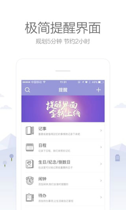 4、極簡提醒界面:生日、紀念日、倒數日:支持通訊錄、社交網絡上的重要日期一鍵導入;