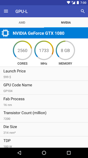 N卡A卡,很多人都不知道是什么意思,其實(shí)N卡A卡是顯卡的類型,一種是ATI(A卡),另一種是MVIDIA(N卡)。相信很多DIY玩家對(duì)它們應(yīng)該熟悉。今天小編給大家?guī)?lái)了對(duì)DIY玩家非常有用的App——GPU列表(GPU L),GPU列表集成了大量N卡A卡GPU的資料,讓你徹底了解N卡A卡。