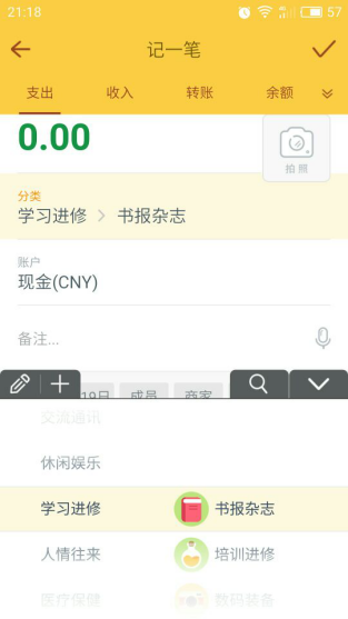 “隨手記”記賬的一大優點是分類細致,休閑娛樂、交通通訊、人情往來、醫療保健這些大類別下面分布著小類別,如學習進修里有書報雜志、培訓進修等,無需手動備注。不過在滑動過程中太靠近底部,容易誤操作。完成時必須點擊“展示全部“才能確定更改。